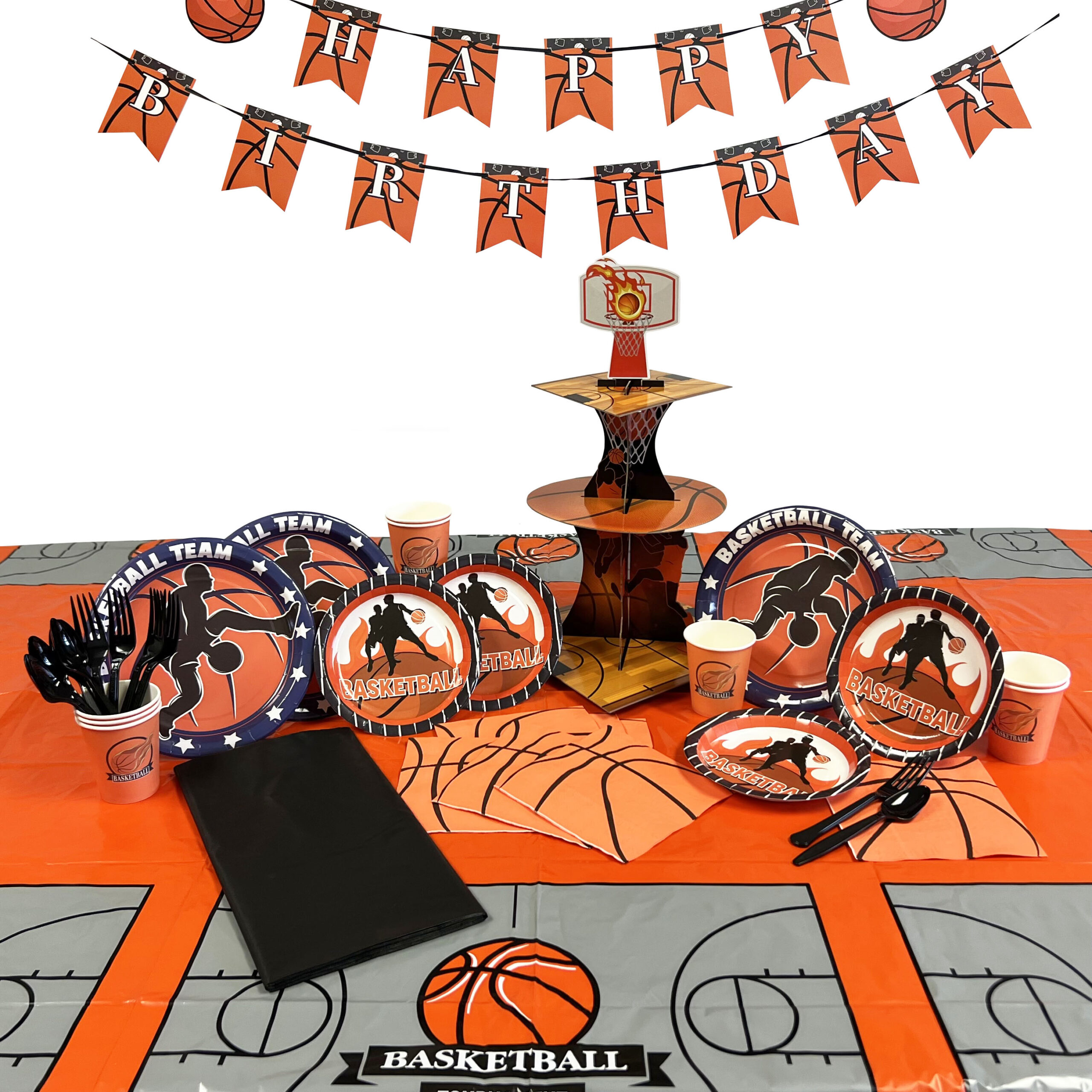 Featuring bold basketball graphics and court-inspired designs, this kit includes everything you need to serve guests in style. From plates and cups to napkins and table coverings, each piece is designed to bring the excitement of the court right to your party table.