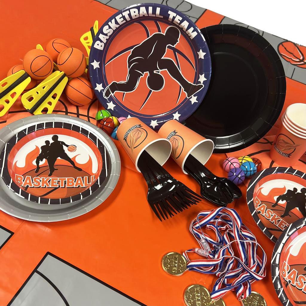 Bring slam-dunk style to your celebration with the Basketball Party 9″ Plates from Party Direct! These bold and exciting plates feature a dynamic basketball player silhouette over an orange basketball background, surrounded by a navy-blue border accented with stars and the words “BASKETBALL TEAM.” Perfect for serving meals, snacks, or desserts, these sturdy paper plates combine eye-catching design with convenience. Whether you’re hosting a basketball birthday party, team banquet, or game day gathering, they’re sure to be a crowd favorite! Score big with your guests and make every party feel like championship night with these action-packed plates!