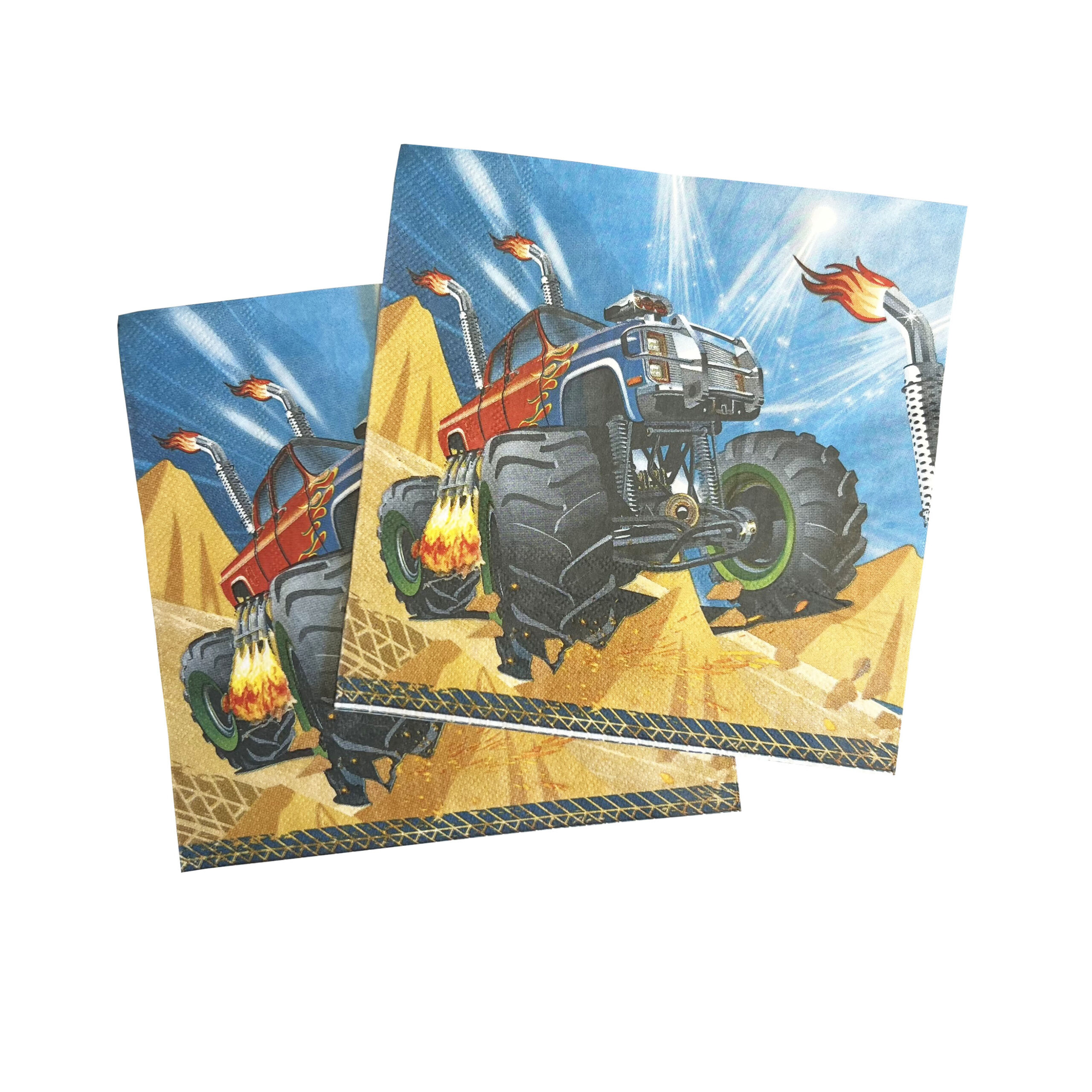 Get ready to rev your engines and take your party to the next level with our Monster Trucks Luncheon Napkins from Party Direct! Bursting with action, these napkins feature a powerful monster truck soaring over rugged terrain, complete with fiery details and high-energy colors that capture all the thrills of a real monster truck rally. They’re the perfect addition to your table setup, bringing excitement and bold style to every place setting.