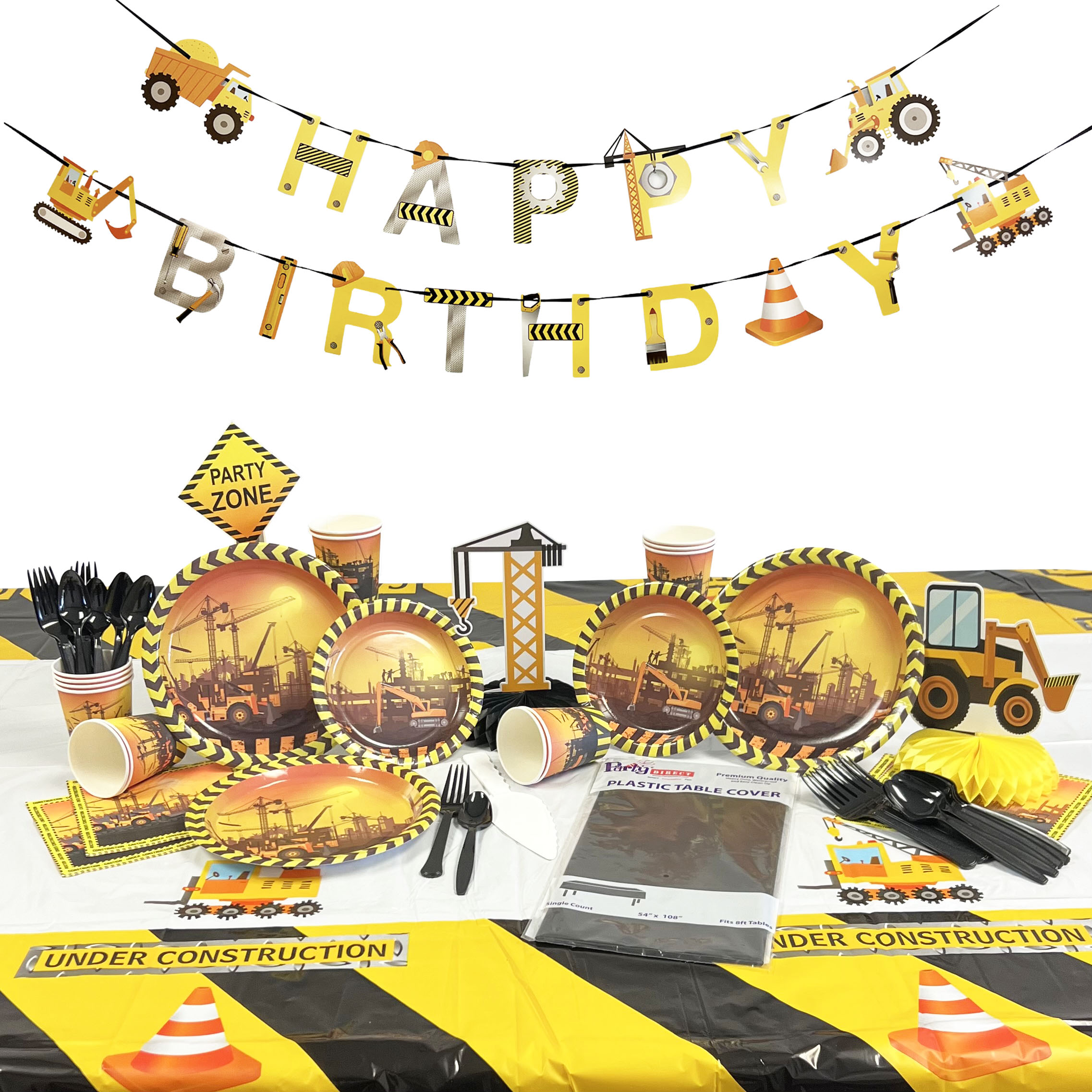 Get the party building in style with the Construction Deluxe Party Kit from Party Direct! Perfect for little builders and construction fans, this all-in-one party set features bold yellow and black “under construction” colors, construction vehicles, and work-site graphics that transform your table into a fun jobsite celebration. The deluxe kit includes everything you need to easily set up a coordinated party table for 8 or 16 guests. With matching plates, cups, napkins, utensils, and festive decorations, hosting your construction-themed birthday party has never been easier. The set also features eye-catching accents like construction vehicle designs, caution stripes, and a “Happy Birthday” banner that adds the perfect finishing touch to your party space. Ideal for birthdays, classroom celebrations, or any construction-themed event, this kit saves time while creating a fun and memorable party setup that kids will love. Make party planning quick and easy and let the celebration begin with this exciting Construction Deluxe Party Kit from Party Direct—everything you need to build an unforgettable birthday party!
