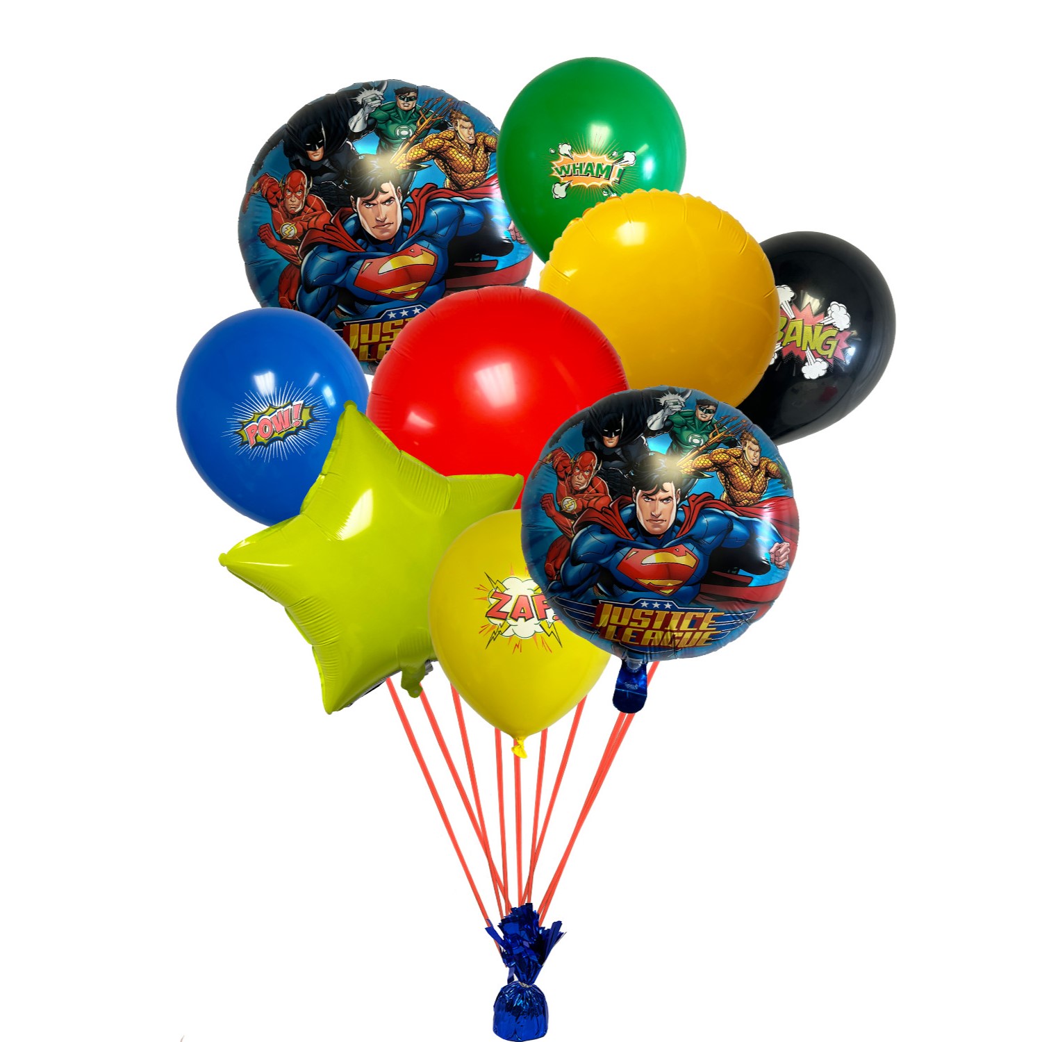 Assemble the ultimate superhero celebration with our Justice League Balloon Kit! This incredible kit is a must-have for fans of DC Comics and the iconic Justice League, bringing together the most powerful and beloved superheroes for an unforgettable party experience. The centerpiece of the kit showcases dynamic and larger-than-life balloons featuring Superman, Batman, Wonder Woman, The Flash, Aquaman, and more. With vivid colors, intricate details, and iconic poses, these balloons capture the essence of each superhero, creating a visually stunning and action-packed display. Unleash the power of justice and unite your favorite superheroes with this captivating and visually striking balloon kit!