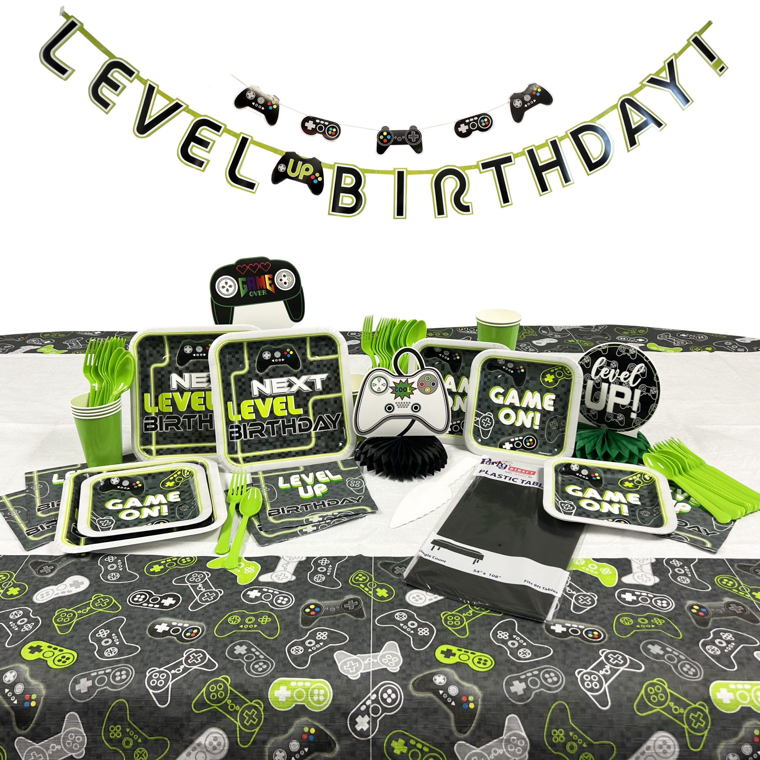 Elevate your birthday celebration to the next level with our “Level Up” Birthday Party Deluxe Kit! This all-in-one party kit is perfect for gamers and those who love a good challenge. The kit includes 9-inch “Level Up” dinner plates and 7-inch dessert plates, featuring a cool gaming theme that sets the stage for an adventure-packed mealtime. Complement your snacks with matching “Level Up” cups and coordinating luncheon napkins. To transform your party space into a gaming paradise, the kit includes a “Level Up” table cover, creating the perfect backdrop for your decorations. You’ll also receive a complete set of cutlery with forks and spoons, ensuring a convenient dining experience. With the “Level Up” Birthday Party Deluxe Kit, you’ll host a fun and memorable celebration for your child and their friends, complete with all the elements of a fantastic gaming experience. Let the games begin!