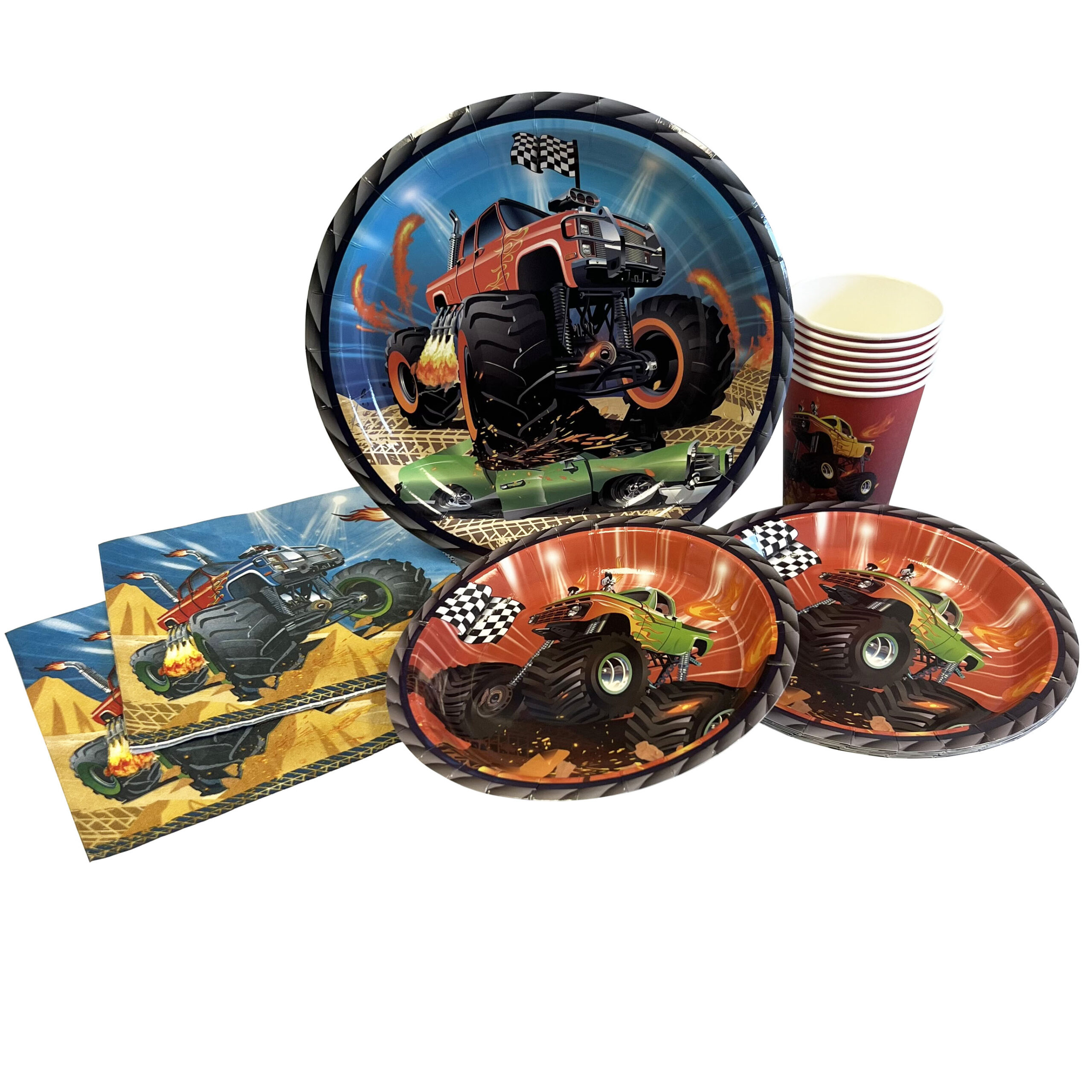 Rev up the fun at your celebration with these Monster Trucks 7″ Plates from Party Direct! Featuring an action-packed design of a giant monster truck bursting through flames and dirt, these plates bring excitement straight to the table. Perfect for serving cake, snacks, or dessert, each durable paper plate is built to handle big appetites and high-octane parties. Whether you’re hosting a monster truck–themed birthday or a racing event, these bold, colorful plates add the perfect finishing touch to your table setting. Make your party roar into action with these thrilling Monster Trucks plates!