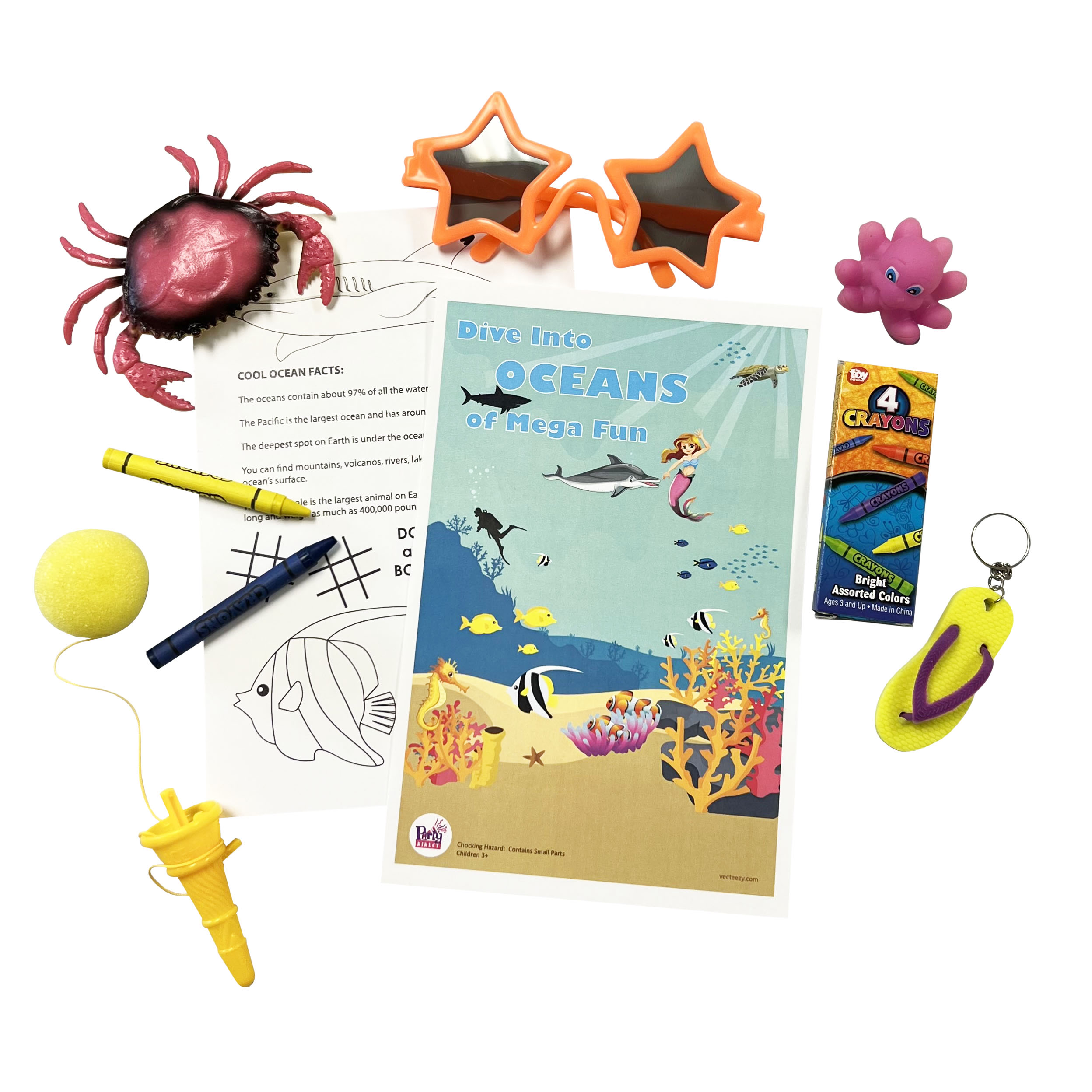 Dive into a sea of excitement with Party Direct’s Oceans of Fun Mega Favor Bag! This treasure trove is a gateway to underwater adventures, perfect for any aquatic-themed event. Bursting with vibrant marine stickers, mini sea creature figurines, beach-themed accessories, and more, it guarantees an ocean of smiles among your guests. From mermaid enthusiasts to aspiring marine biologists, the Oceans of Fun Mega Favor Bag offers something for everyone. Let imaginations swim freely as they embark on imaginary voyages, creating memories that shimmer like sunlight on water. Whether it’s a pool party, beach bash, or ocean-inspired gathering, this goody bag adds a splash of delight and keeps the party tide rolling. Make waves of joy and transform your event into an underwater wonderland with the Oceans of Fun Mega Favor Bag!