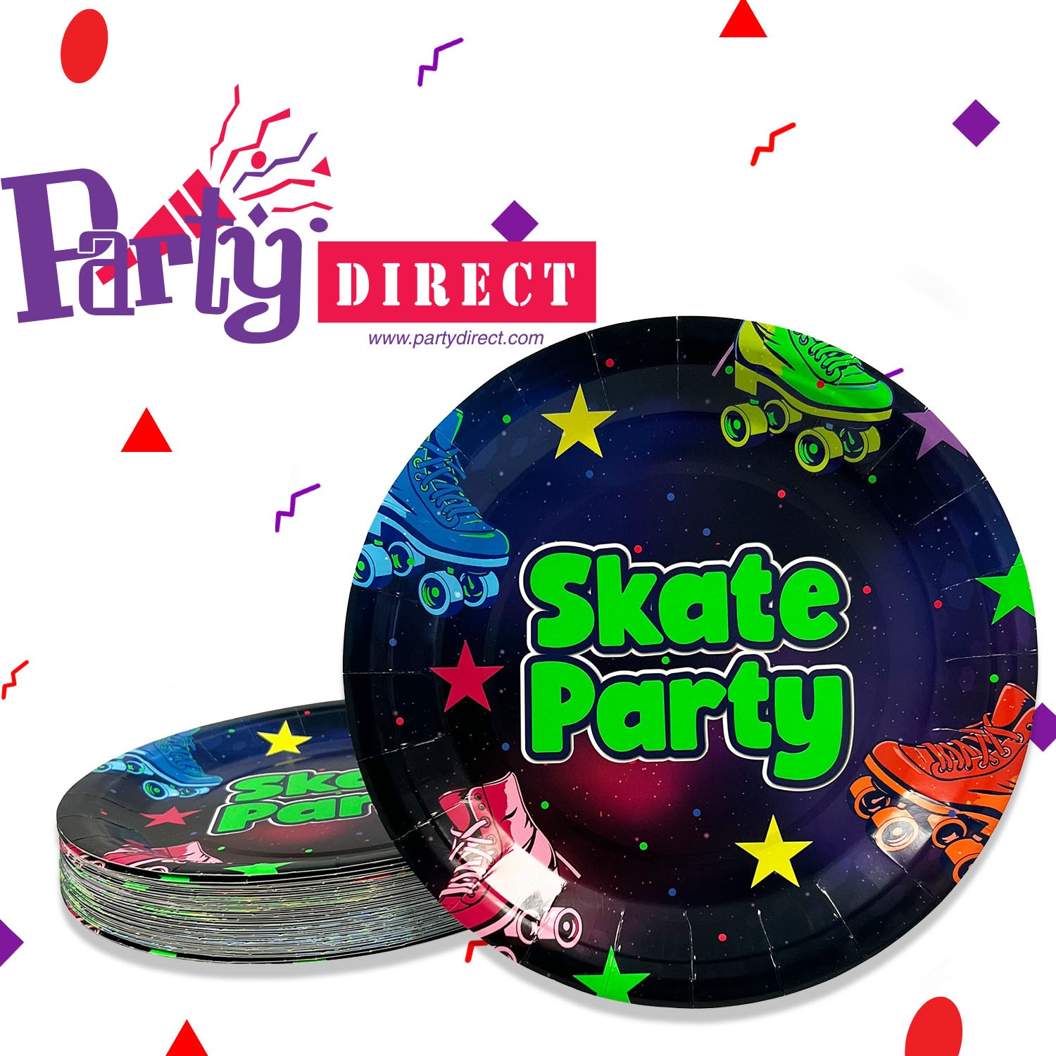 Get ready to roll into fun with our Skate Party 9″ paper plates from Party Direct! Perfect for your next roller skating bash, these vibrant plates feature a dazzling design that will have everyone buzzing with excitement. Adorned with colorful roller skates in shades of pink, blue, orange, and green, set against a cosmic black background sprinkled with stars, these plates are sure to elevate your party decor. Each plate is not only eye-catching but also sturdy enough to hold all your delicious party treats, from pizza slices to cupcakes, making them a practical choice for any celebration! Whether you’re hosting a birthday party, a skating rink event, or just a fun get-together with friends, these Skate Party plates will add a splash of color and energy to your table setting. With a generous 9-inch size, they provide ample space for all your favorite snacks. Make your party unforgettable and let the good times roll with these fabulous paper plates that are as fun as skating itself! Grab yours today and get ready to celebrate in style!