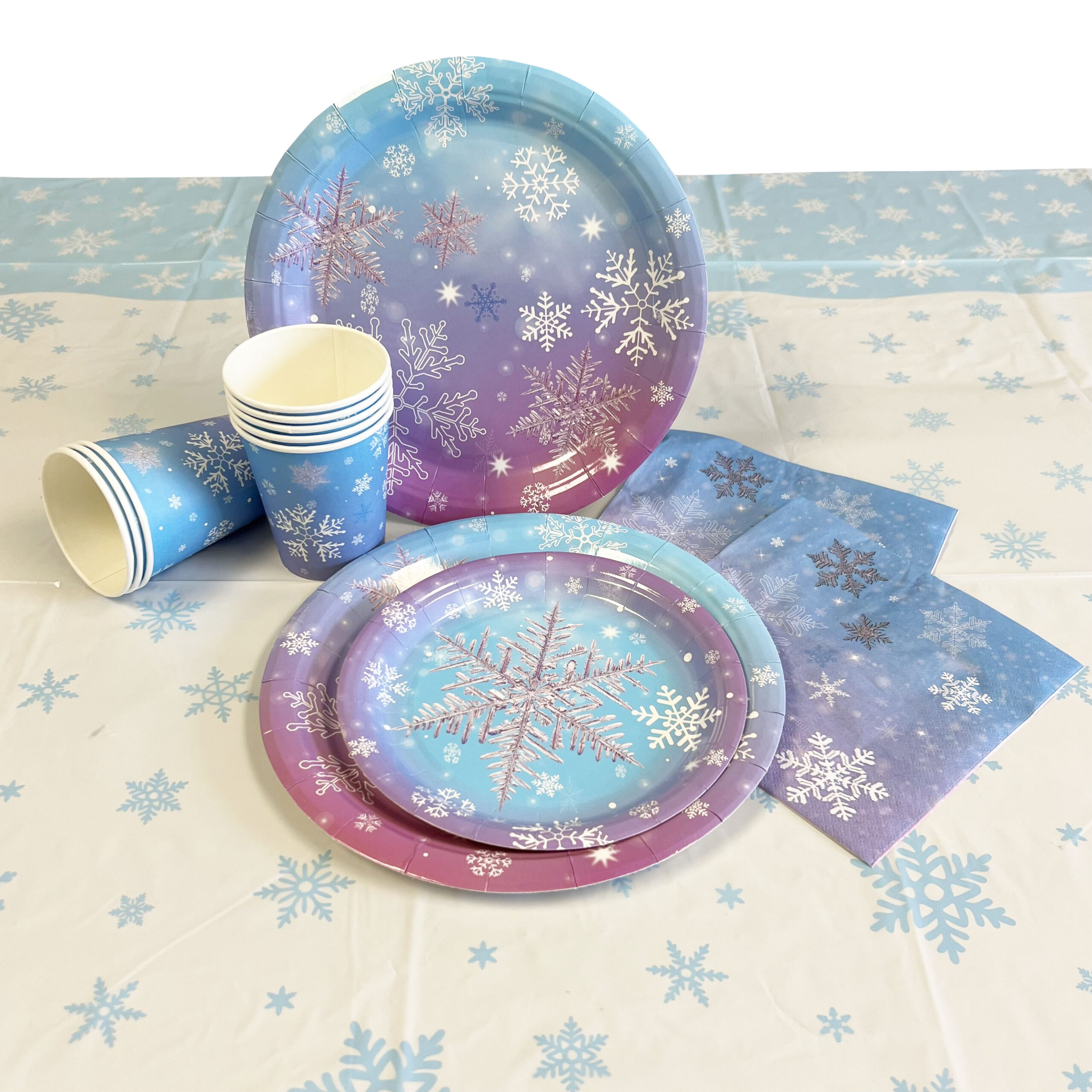 Ideal for winter birthdays, Christmas gatherings, New Year’s celebrations, classroom parties, and Frozen-inspired themes, these snowflake plates add charm and convenience to every occasion. Pair them with coordinating 7″ dessert plates, napkins, and cups to complete your festive table setting.
